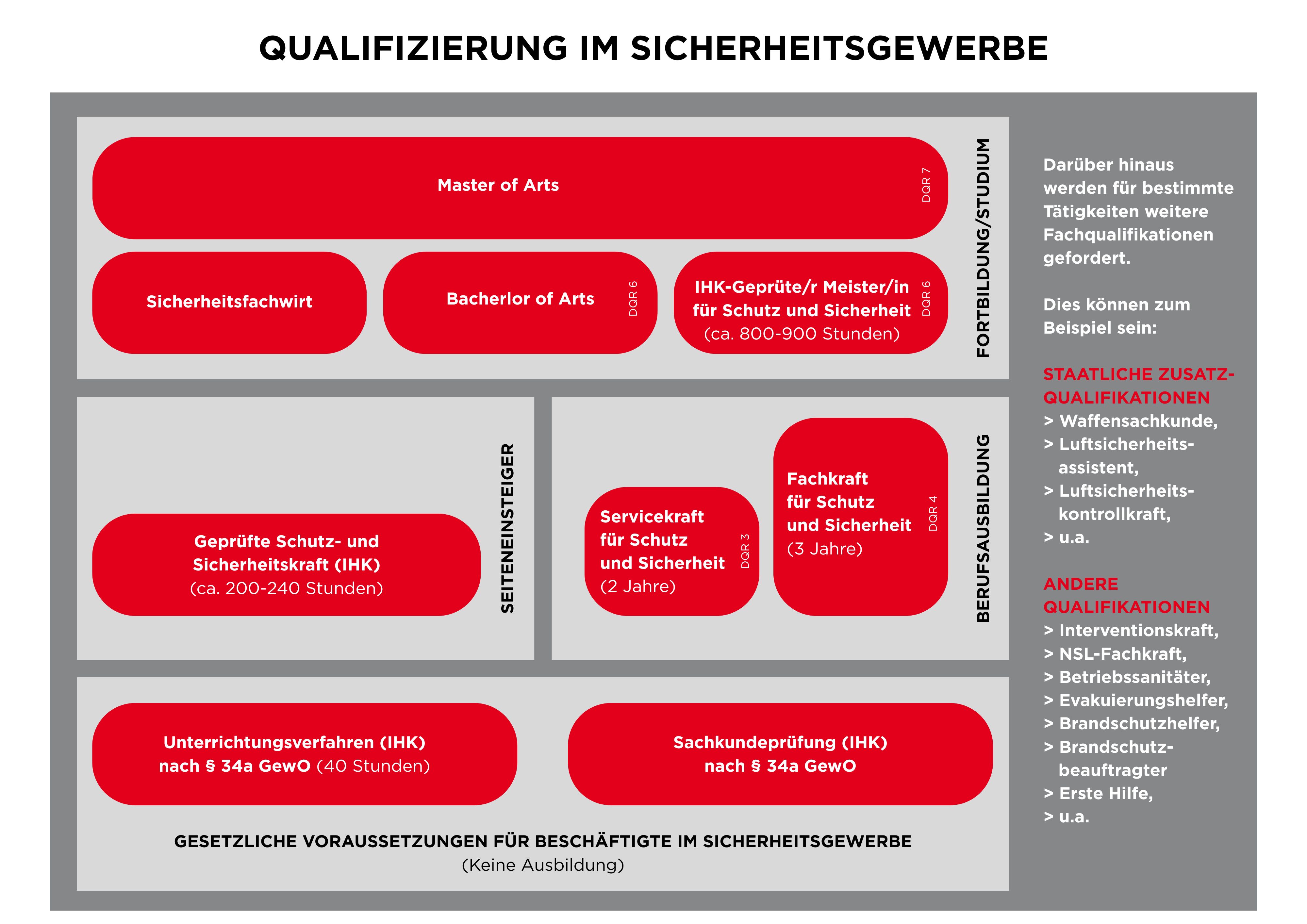 Die seit 2008 existierende duale Ausbildung zur Servicekraft für Schutz und Sicherheit dauert 2 Jahre. Die Schwerpunkte liegen auf den Themenbereichen Rechtsgrundlagen für Sicherheitsdienste, Sicherheitsdienste, Kommunikation und Kooperation, Schutz und Sicherheit, Verhalten und Handeln bei Schutz- und Sicherheitsmaßnahmen sowie Sicherheitstechnische Einrichtungen und Hilfsmittel.