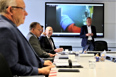 Dr. Jörg Vogelsang (r.) informiert die libysche Delegation über die komplexe Ausbildung zum Schweißtaucher.
