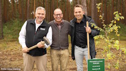 Ein Unternehmensforst, der mit seinen Kunden wächst: Gemeinsam mit Vertretern von Tennant Company pflanzte Arnulf Piepenbrock (Mitte) nun den 150.000sten Baum in Rheinshagen.