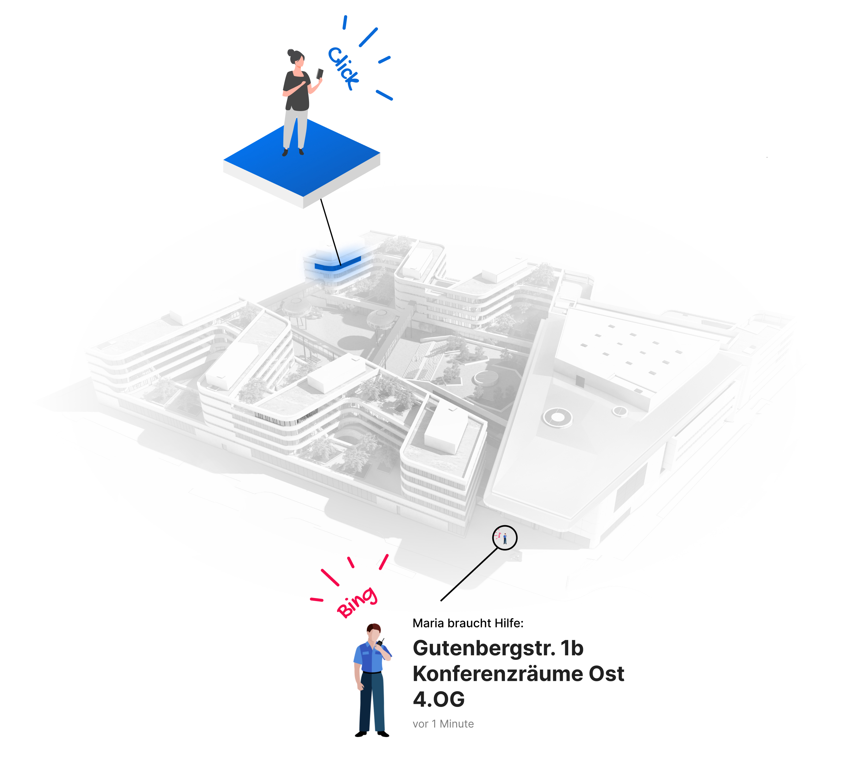 Das Sicherheitspersonal der WISAG erhält im Falle eines Alarms dank innovativer Ortungstechnik den genauen Standort und kann schnell zu Hilfe kommen.