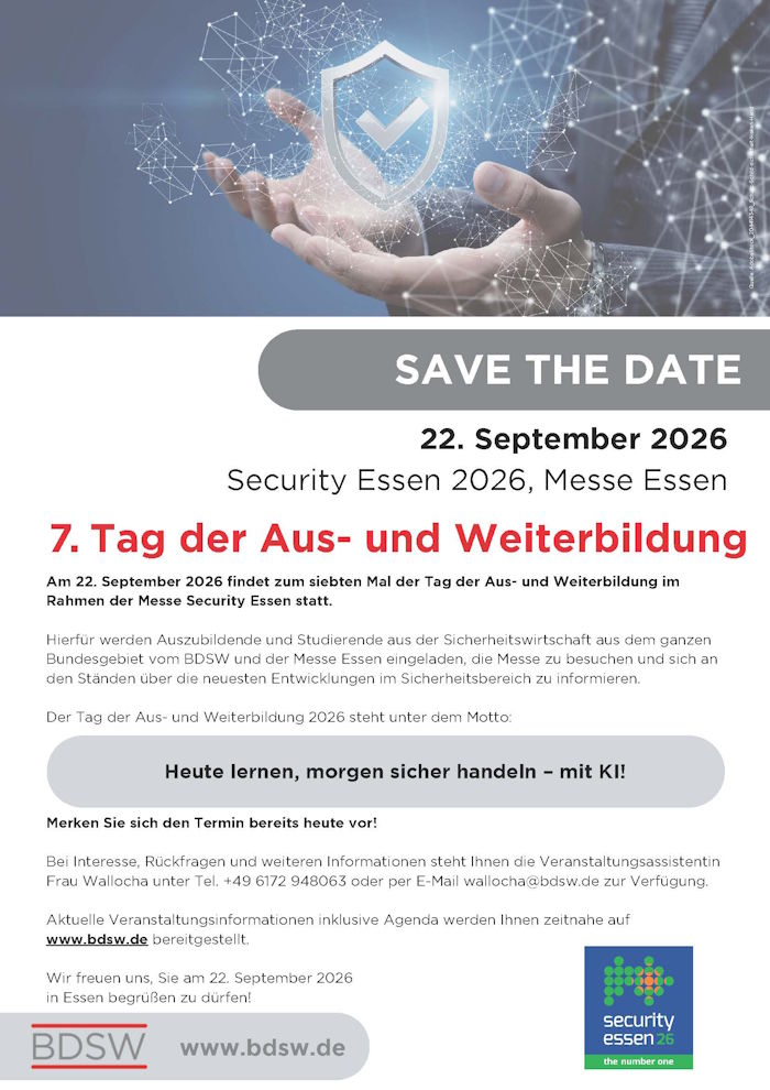 Bundesverband der Sicherheitswirtschaft (BDSW) © 2026 . Alle Rechte vorbehalten.